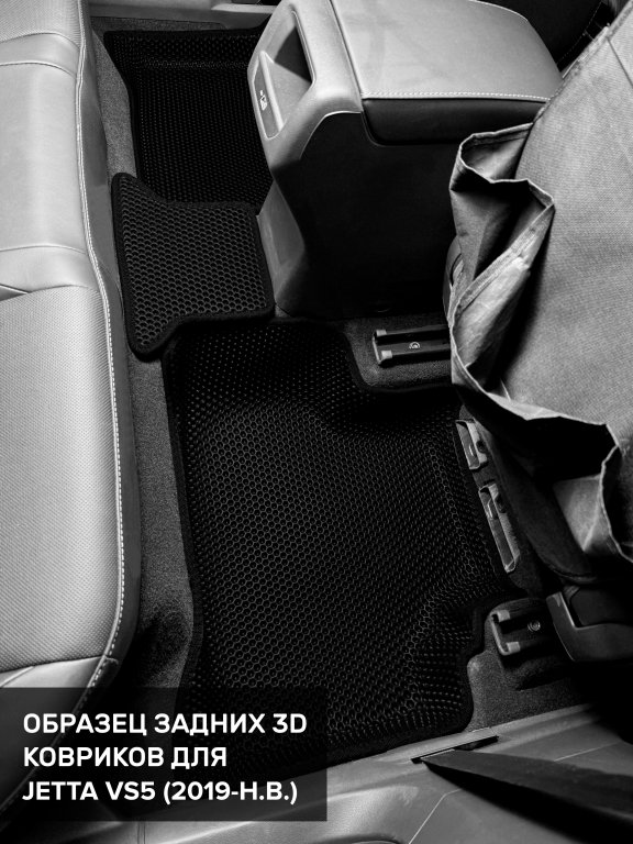 Автомобильные 3д коврики для Jetta VS5 (2019-н.в) в салон авто и багажник сделаны из инновационного полимерного материала EVA, изысканная структура в виде ячеек не дает воде, пыли и снегу разлетаться по салону машины и багажнику. 3д коврики зафиксированы на полу определенными клипсами, соответствующими Jetta VS5 (2019-н.в), и не двигаются в процессе езды.